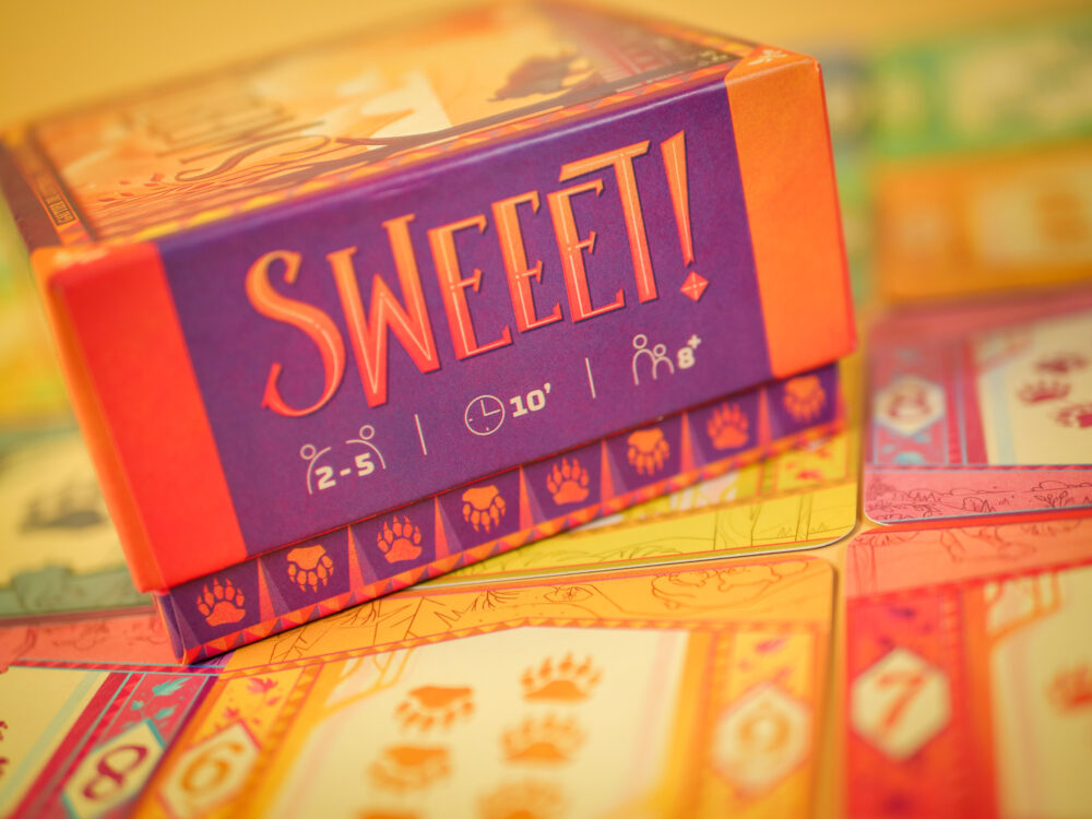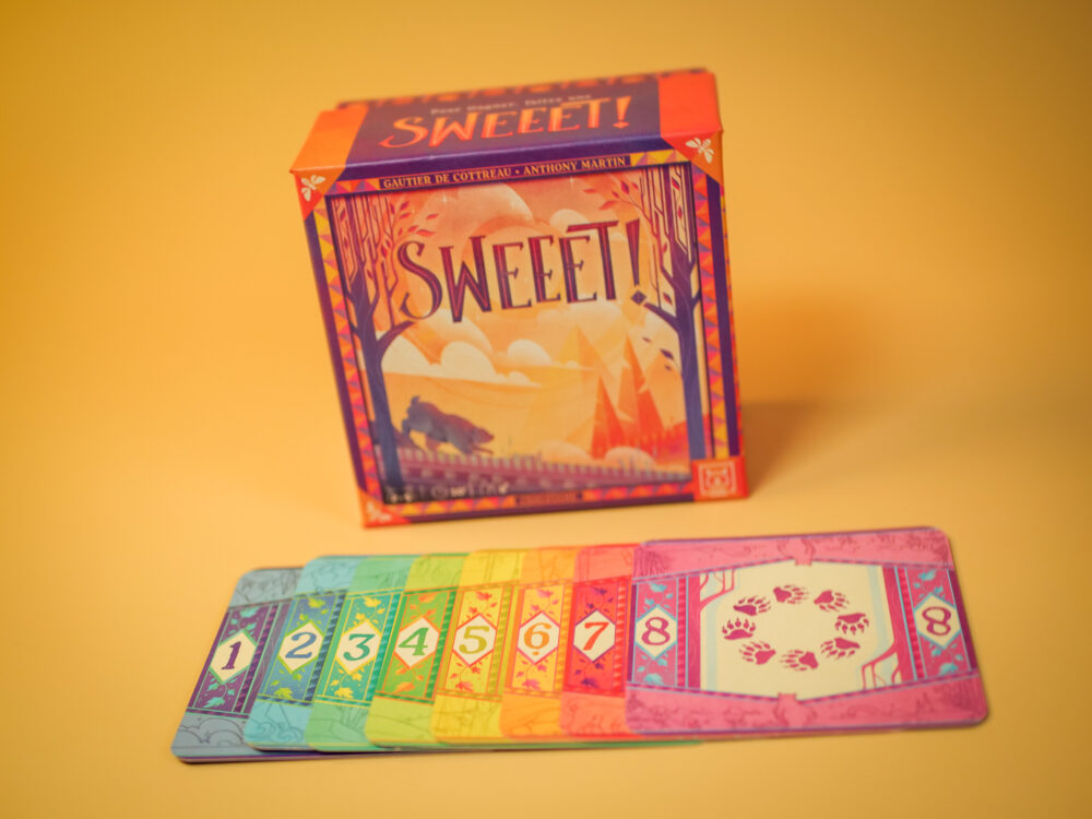 - SWEEET! Un jeu de Gautier De Cottreau et Anthony Martin, illustré par Crocotame Sortie : 12 septembre 2025 Le printemps sonne à sa porte et l’Ours s’éveille. Chaque carte évoque la vie de l’Ours durant la saison chaude avant son retour en hibernation. À votre tour, prenez des risques pour être le premier à réunir une suite de 8 cartes.