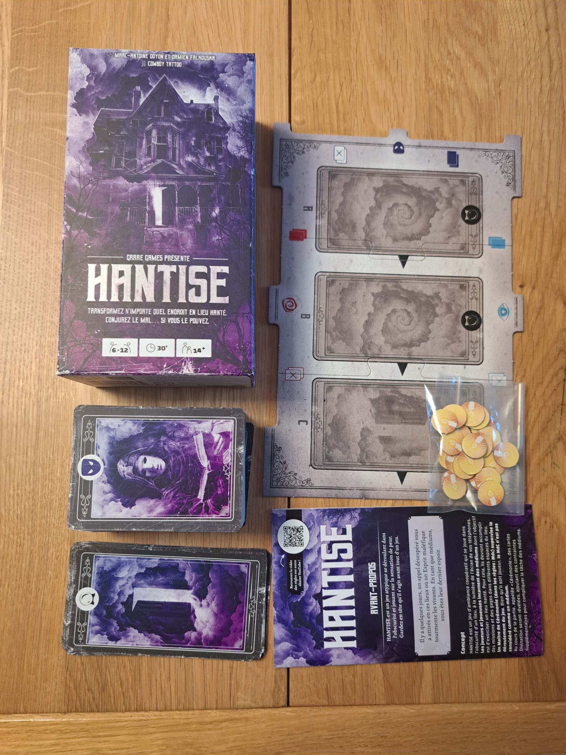 Carte 61x112mm, Carte 63x88mm, Jeton Chandelle, Plateau Rituel, Livret de règles