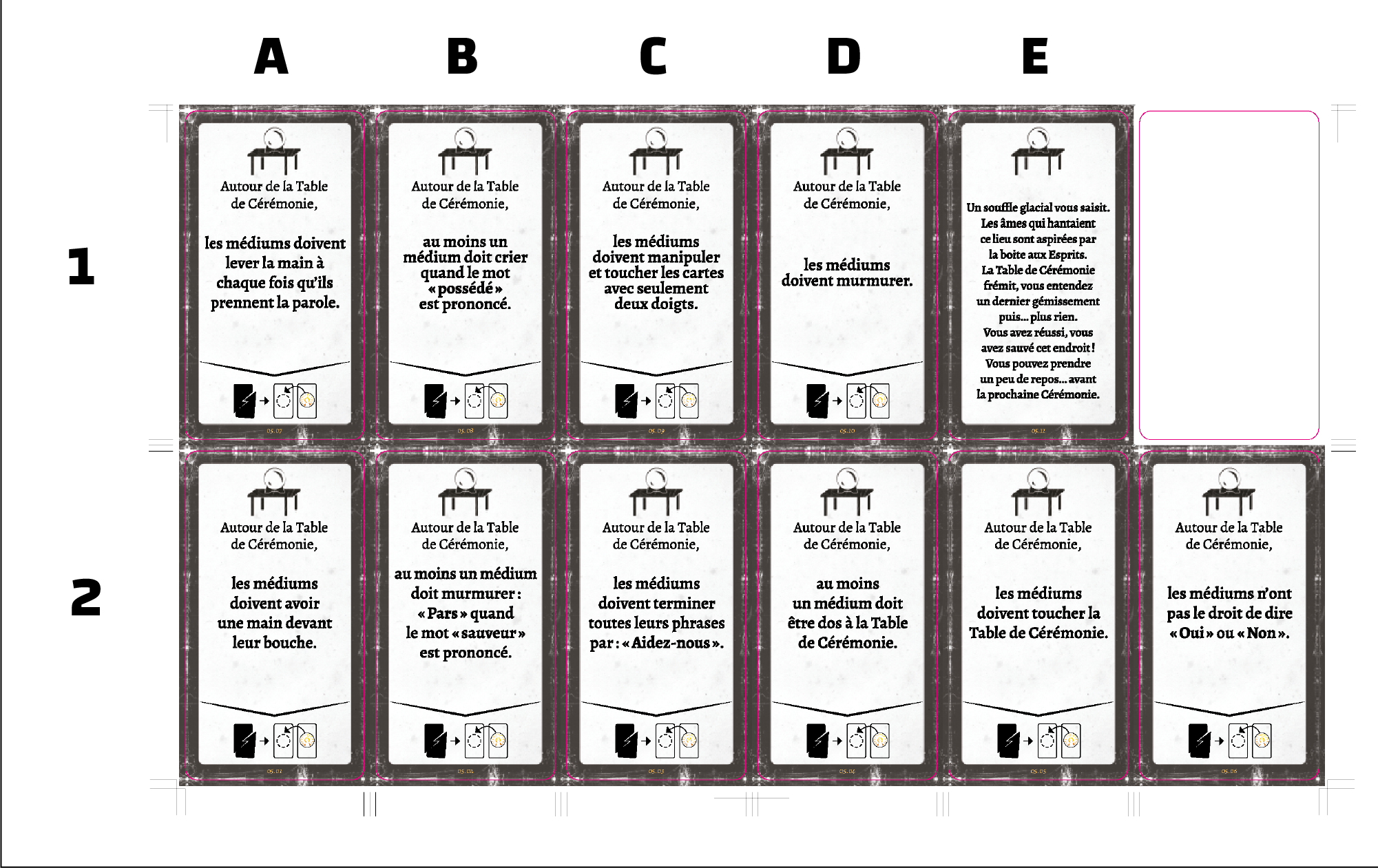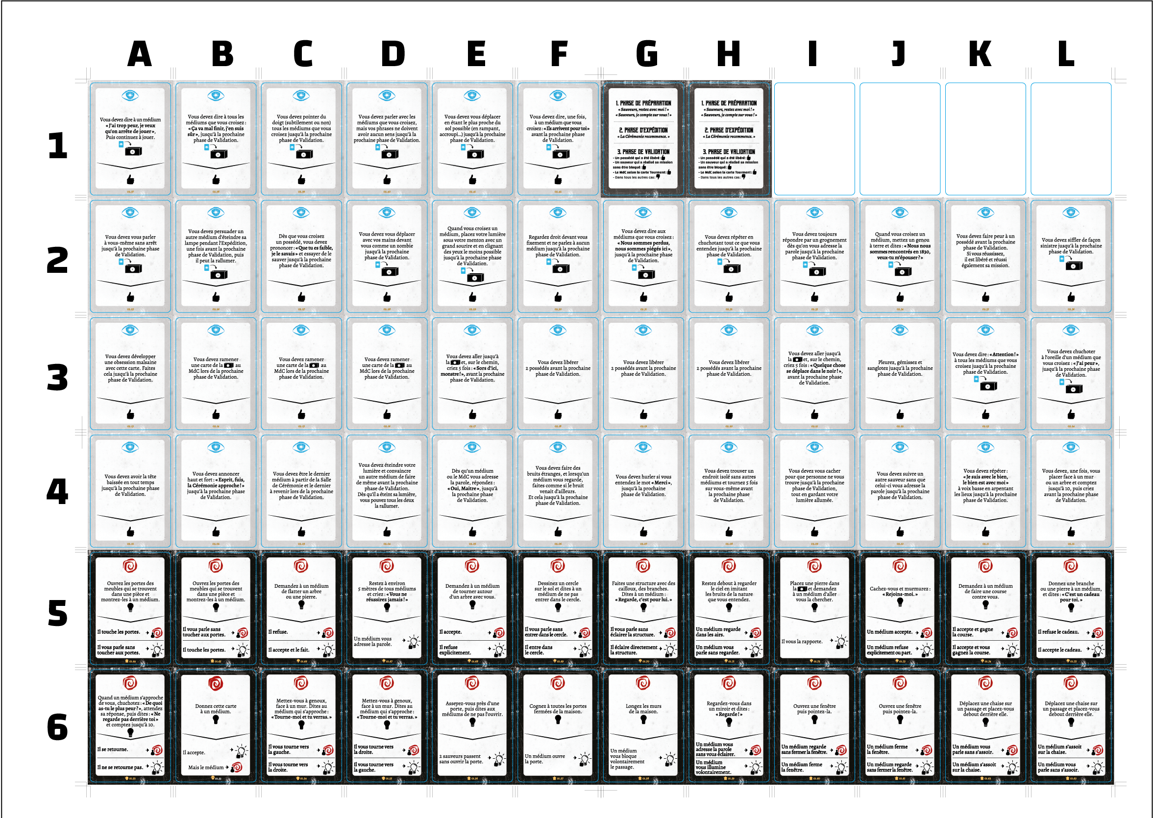 Pour cela, reportez-vous à la photo à plat de toutes les cartes du jeu et notez la combinaison lettre + chiffre indiquée sur l’image (par exemple : A3, C2…).