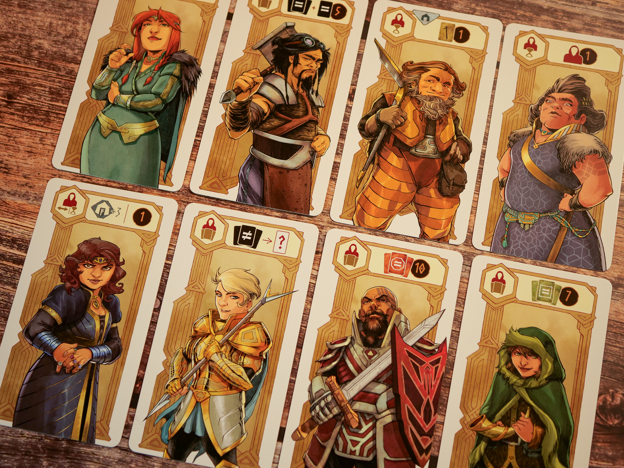 – Fin de tour : défaussez vos cartes non utilisées, gagnez des Aare en fonction de vos améliorations.